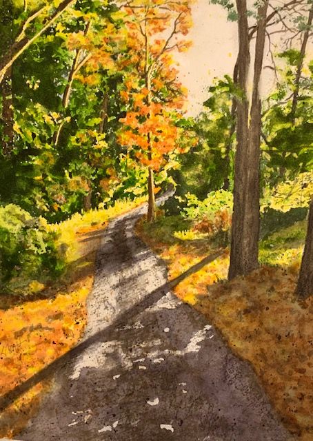 Further, you can create the desired value of a color by first choosing the right pigment for the value you want. Catherine Gill, in Powerful Watercolor Landscapes, pp. 120-121, suggests, “If you want a light value, choose a transparent pigment. For a middle value, choose an opaque. For a dark value, choose a stain.” You still must adjust the amount of water you use. For a light color using a transparent pigment, use more water. For achieving middle value color, make a thicker mixture with an opaque color. An even thicker mixture made with a staining color will produce a dark value.